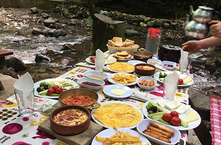 Trekking : Yaylada ve çevresinde geziniyor, doğanın keyfini çıkarıyoruz. Hep birlikte sucuk-ekmek hazırlayıp yemeğimizi yedikten sonra dönüş yürüyüşü başlıyor. Dönüşte, isteğine bağlı olarak alabalık lokantasında yemek yiyebiliyoruz.